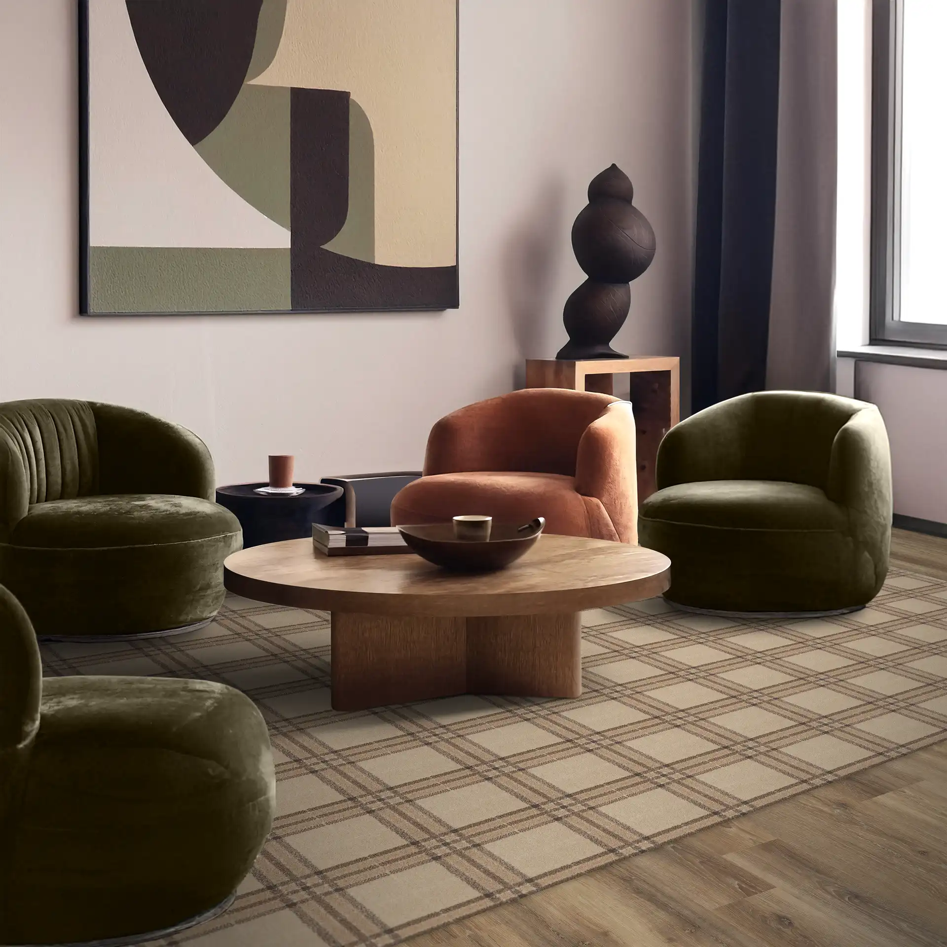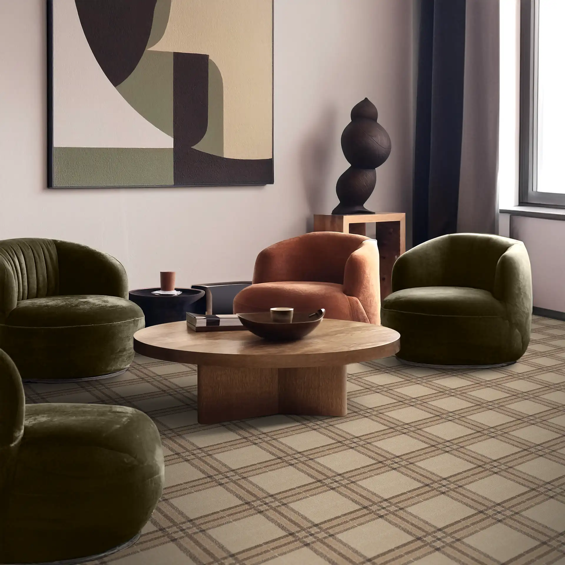 Highlands, part of Belgotex's Anne Colle Collection, is a durable woven carpet ideal for medium commercial use, combining Stainproof SDX yarn, excellent sound absorption, and fire safety ratings with a sophisticated design.